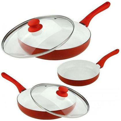 Каждая сковородка изготовлена из пищевого алюминия, имеет удобные жаропрочные бакелитовые ручки и подходит для всех типов плит: газовой, электрической, стеклокерамической.