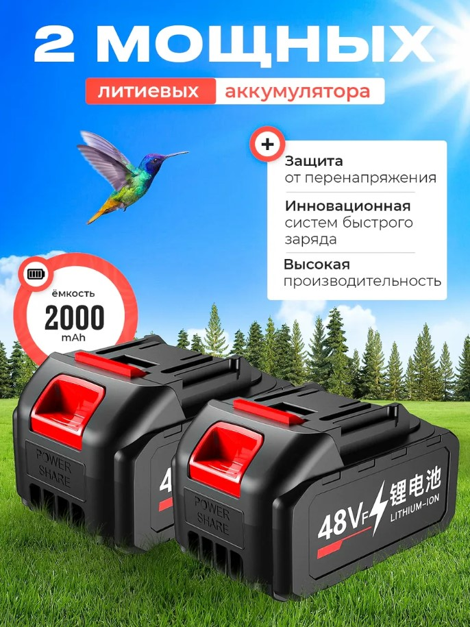 Два литий-ионных аккумулятора емкостью 2000 мА·ч каждый обеспечивают продолжительное время работы без необходимости частой подзарядки, позволяя выполнять задачи без перерывов.Эргономичная конструкция с удобными рукоятками и хорошо сбалансированным центром тяжести делает пилу комфортной в использовании даже при длительной работе.